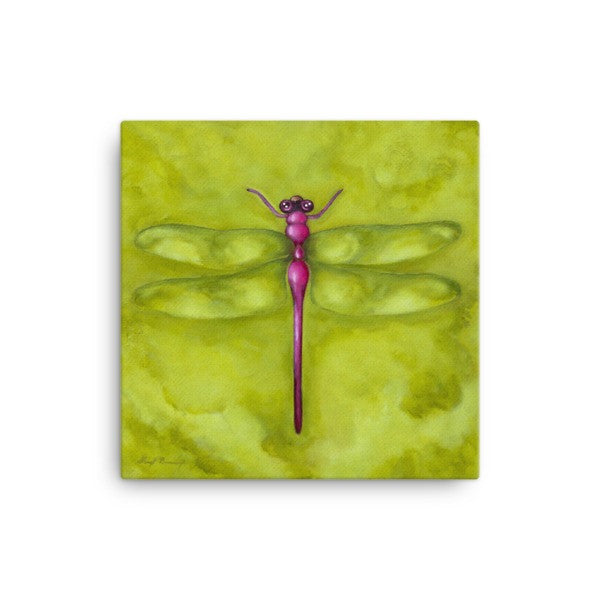 From my Sisters collection, this dragonfly painting is named after my sister Jeanette. This canvas print is sure to make a statement in any space. It's hand-stretched on a poly-cotton blend canvas with a matte finish coating.