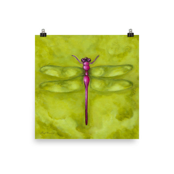 Dragonfly Jeanette on Green background.